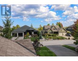 Stunning Townhome in the Exclusive Lora Bay Community. Experience elegant four-season living in this 5-bedroom, 4.5-bathroom townhome, perfectly situated in the prestigious enclave of Lora Bay. With Georgian Bay views, a double-car garage with EV charging outlet, and flexible living spaces, this coveted East Ridge villa is ideal for active retirees, year-round residents, or weekenders seeking a retreat in a vibrant community. The open-concept main floor living and dining space features a stone surround gas fireplace, wood floors, new pot lights (2025) and a spacious kitchen with breakfast bar. Sliding glass doors from living room opens onto a private back patio that blends seamlessly into a wooded setting backing onto the Georgian Trail. A main-floor bedroom with 4-piece ensuite with soaker tub and walk-in shower, currently used as a den, offers versatility for main floor living. Upstairs features the spacious primary suite with a luxurious 5-piece ensuite, two additional guest bedrooms, cozy sitting area, a private balcony with spectacular sunrise views of Georgian Bay. The finished lower level provides a recreation area, guest bedroom, and full 4 pc bath. New energy efficient 2-stage Furnace and Thermostat (2023), Air Conditioner (2024), Water Heater Owned (2023), Pot lights, under cabinet lighting and dimmer switches throughout (2025), Freshly painted throughout (2025), Roof (2025), Driveway resurfacing (2025), Paver stone steps to covered front porch (2025). Residents of Lora Bay enjoy exclusive amenities: clubhouse, restaurant, fitness center, two private beaches, park and endless trails. Close to golf, skiing, beaches, parks, trails and Thornbury shopping, restaurants and downtown amenities, this home offers the perfect balance of elegance, recreation, and community. (id:47312)